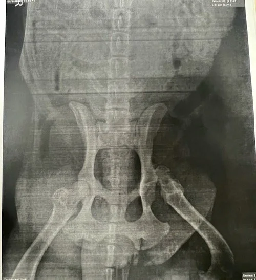 X-rays revealed that his left hip was completely unhinged, with the ball of his femur dislodged from its socket. Was he hit by a car? Abused? We'll never know for sure. Champ went back in for more surgery. The FHO procedure removed the ball of his femur, allowing his leg to naturally reposition itself back into the socket. Scar tissue developed around the joint, securing it in place, and with time and effort, Champ's life would be allowed to continue with minimal change.